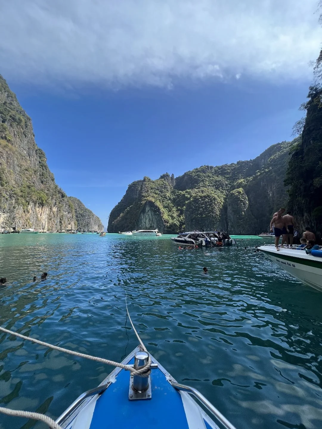 Koh Phi Phi Lee is the wild, uninhabited jewel of the Phi Phi islands and most famous for Maya Bay, the iconic cove featured in The Beach movie with Leonardo DiCaprio. Most travelers visit on a day tour from Koh Phi Phi Don, which includes spending time at Maya Bay and snorkeling in the emerald waters of Pileh Lagoon, though tours also run from Phuket and Krabi. Sheer limestone cliffs rise vertically from bright turquoise water, creating one of the most dramatic seascapes in Thailand.